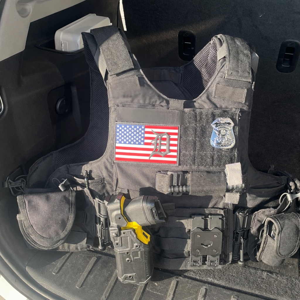 Large sized 3"x5" Velcro hook backed PVC patch comes with matching loop panel. Detroit D is raised 3D and ships free.